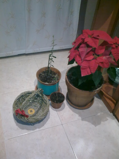 Canastos de olivo y plantas.